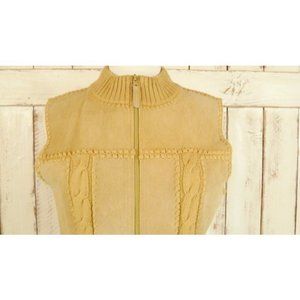 Vintage tan suede cable knit zip up vest/small/medium