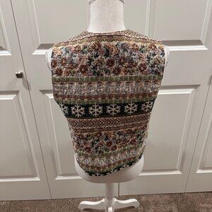 Vintage tapestery embroidery holiday vest size small snowmen, snowflakes, winter