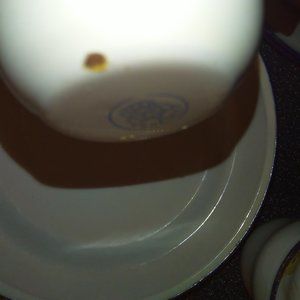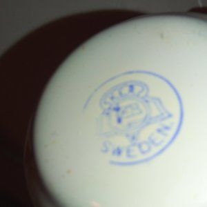 Vintage tea set 6 plates and 6 mini cups enamel metal - maker Sweden on the bottom - super vintage off white with blue... expected imperfections of vintage - see pics... Collectors item for sure. $7 for cups $7 for plates - sold as a lot! Price is firm and sales are final. Excellent for decor or kids tea party. Plates are about 5 in and the cups are about 3 in.