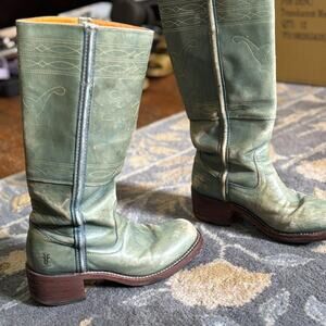 2000s-era faded blue teal aqua Frye 14L campus boots size 8B women's. Well loved, see pic for soles. Bought new at boutique in NYC in 2002.