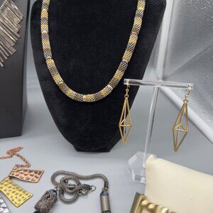 Discover a mix of vintage to modern jewelry featuring silver and gold tones. This collection of mixed metals offers unique style and timeless elegance, perfect for any occasion.