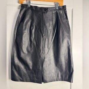 Vintage tomboy black leather high waisted skirt back zip fitted