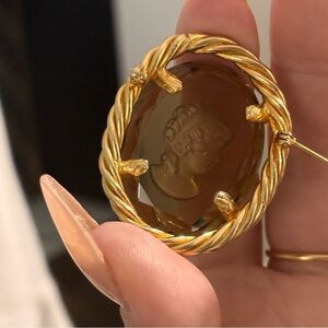 Topaz Colored Vintage Cameo in Stunning Cut Glass