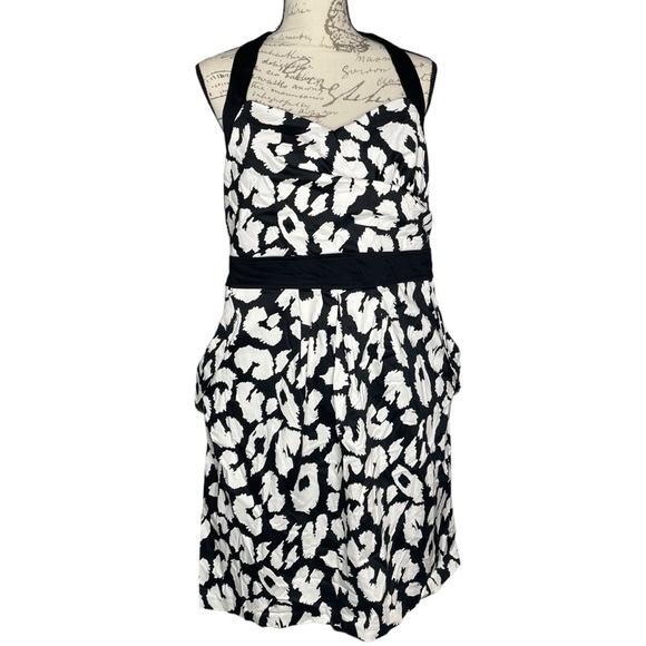 Vintage torrid dress halter neck black white animal print women’s size 22 pinup