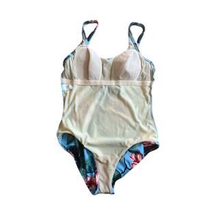 Details: one piece swimsuit, high cut, low cut back, partially lined.