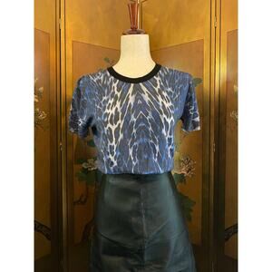 Vintage t-shirt with leopard print in blue merino wool, Y2K style, size M