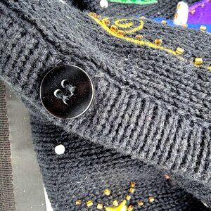Celebrate festive moments with this vintage Christmas vest. Its intricate Santa and reindeer embroidery adds charm, while the button-up design ensures easy wear.