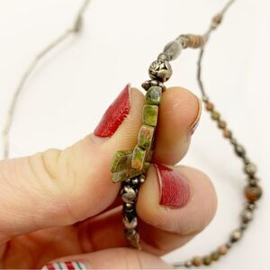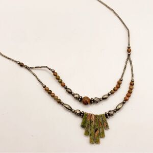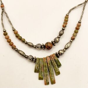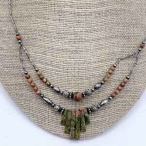 Vintage unakite stone bead and liquid silver tiered necklace barrel clasp
