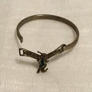 Vintage unicorn hinged bracelet with Turquoise inlay