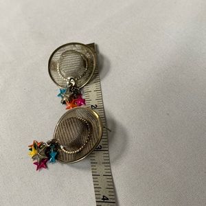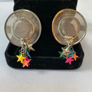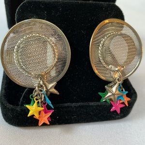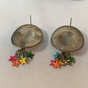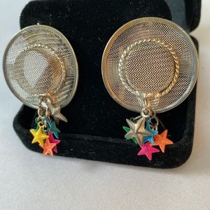 These come from my mother in law’s collection and are just fun looking. Silvertone mesh hats with multi-colored stars dangling from the bottom portion of the hat.