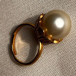 Vintage unsigned Miriam Haskell Faux Pearl Gold-Tone Baroque adjustable ring
