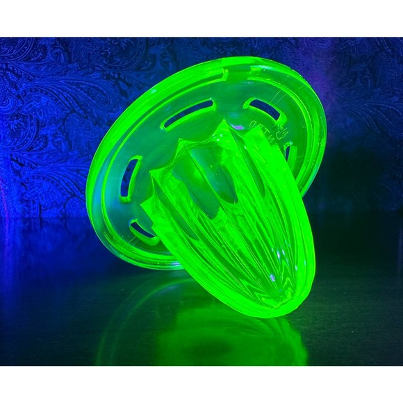 Vintage uranium glass reamer/juicer by u.s. glass co
