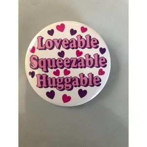 Vintage valentines heart loveable squeezable huggable Pin Button Pinback