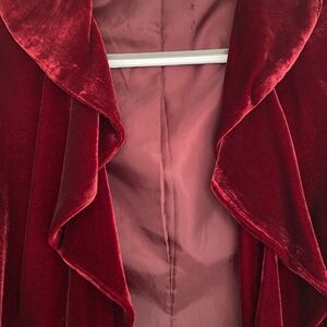 Beautiful rich vintage velvet long sleeve dressy jacket. Great over a dress or just paired with jeans or black pants. Inside ribbon ties and an outside ribbon tie for closure. Size 6