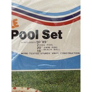 Vintage vinyl Swim Ring Pool Beach Ball Inflatable 3 Piece Set LOVE Rare HTF