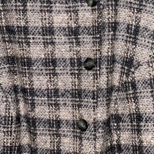 Vintage virgin wool Pendleton blazer - EUC Pendleton 70's or 80's cropped length vintage tweed tailored blazer in a black, gray, tan and white plaid pattern. This collar less jacket features an asymmetrical button front, French darts at the bust, shoulder pads, a full lining and large black buttons. This dark acadamia occasionwear neutral jacket will match with anything and can be dressed up for going out or down for business casual career work wear.