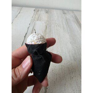 is about 3 in tall by 1 in by one inch, overall good condition, does have a couple of marks on the back of its head and a little bit on its cape, otherwise no other problems