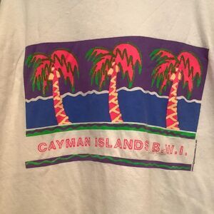 Vintage vtg Cayman Islands b.w.I 1969 graphic designer art screenprint tee T-shirt bye bye brand made in Mexico size xl extra large X-Large