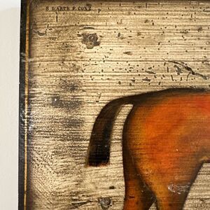 Amazing and very heavy wood board with a painting that depicts a horse name Eleanor.