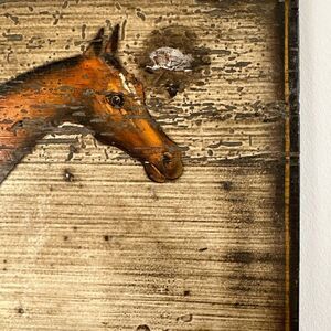 Vintage wall plaque / wooden board frame painting of horse by B. d’Arte F. Conz