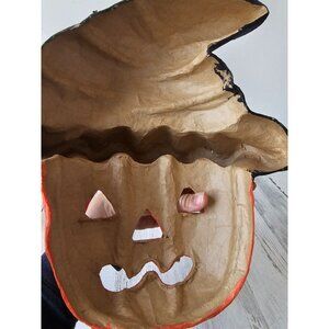 Vintage walnut ridge paper mache pumpkin witch mask painting Halloween decor 199