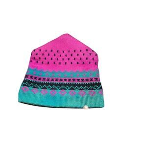 Vintage watermelon beanie wool ski hat Cappello pink and turquoise blue in great vintage condition super cute!