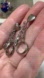 These are just adorable dangling earrings with wedding rings for the dangles. The one ring has a rhinestone attached and the other is a plain band. At the earlobe is a heart.