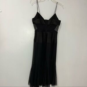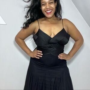 This is a classic little black dress great for evening wear. The spaghetti straps and sweetheart neckline give just a hint of sexy. The criss cross design and subtle sheer cut outs are classy and sultry. It's a fit and flare style and the hem has lots of movement- perfect for dancing! Wear this to your next special occasion and feel comfortable and classy.