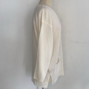 Vintage white Express Tricot v neck 3/4 sleeve two front patch pocket sweater see measurements