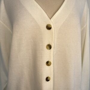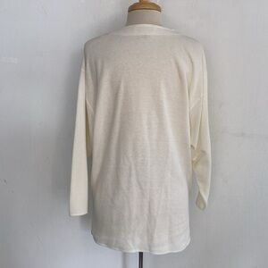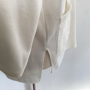Vintage white Express Tricot v neck 3/4 sleeve 2 front patch pocket sweater sz?