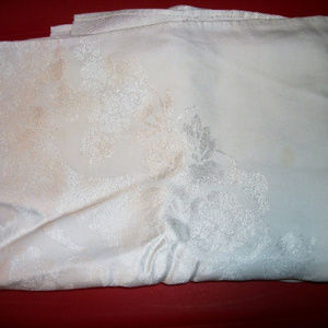 Very pretty Vintage white damask w floral design rectangular tablecloth