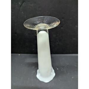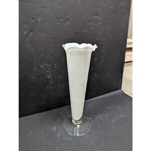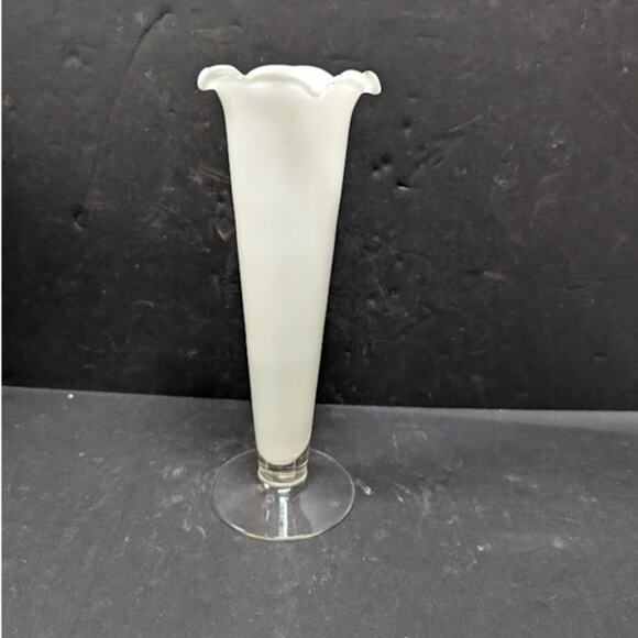 Vintage white frosted Tulip vase ruffle edge tapered clear foot