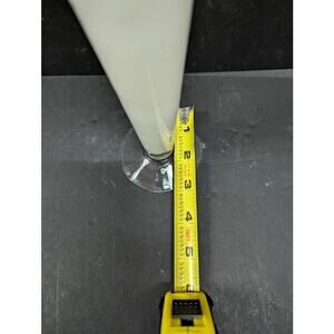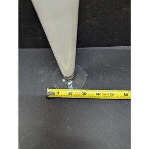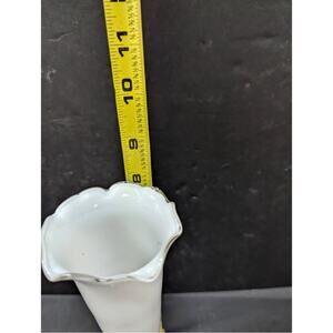 Vintage white frosted Tulip vase ruffle edge tapered clear foot 8" tall Fluted