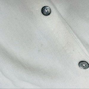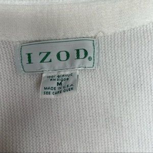 Vintage white izod button up cardigan sweater size medium . Small spot on the front as shown . Can be washed off I just wasn’t sure how to launder it