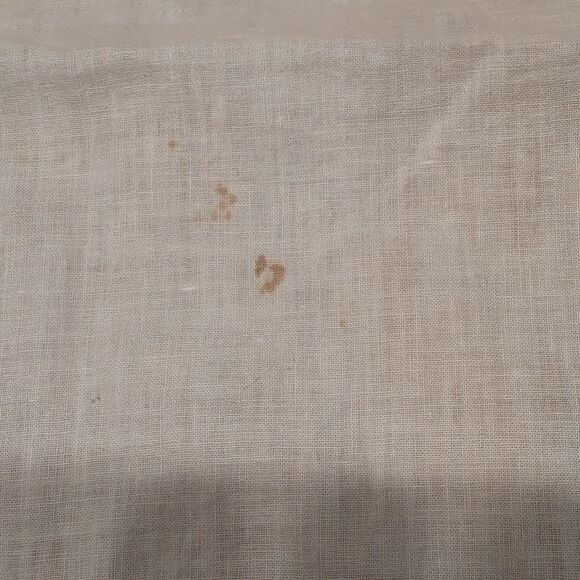 Vintage white linen with ecru trim tea stained lace table mat - 25.5" square. (Does have a couple spots in that I did not try to remove.) Preowned. In good condition. Non smoking home.