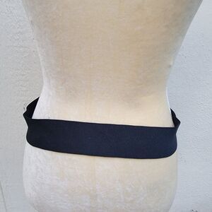 Vintage wide black elastic belt with gold large buckle clasp wmns size M/L