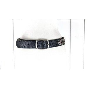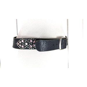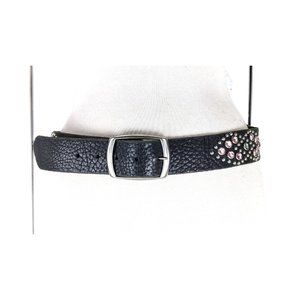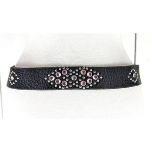 Vintage wide black metal studded rhinestones beaded leather belt 32