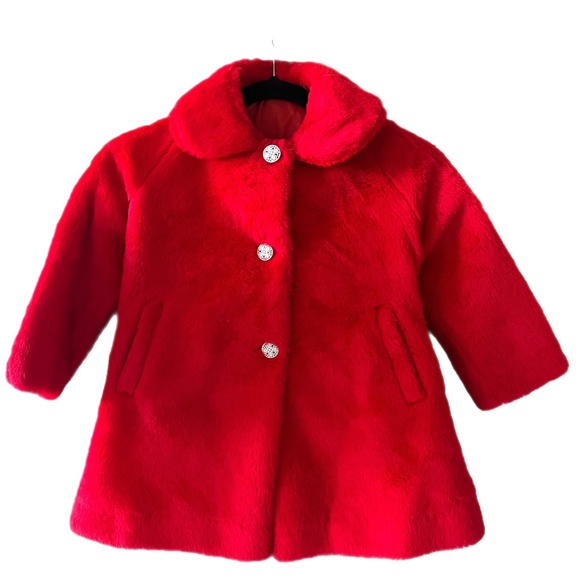 Vintage with tags Red Fur Faux Holiday Winter Coat special occasion size 4