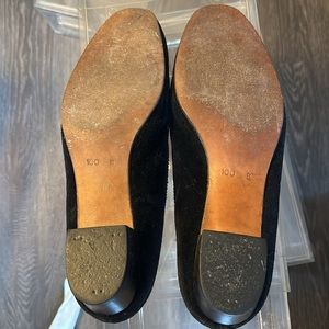 To the manor born- women’s black velvet even g slippers with red quilted lining. Features gold embroidered Fox hunt motif. Brook Brothers 1987- rarely ever worn. Excellent condition.