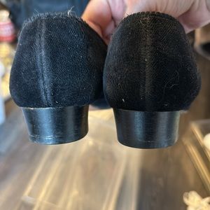 Vintage women’s black velvet evening slippers w gold fox motif