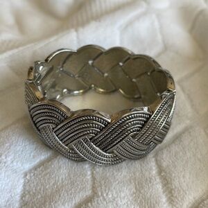 Vintage women's braided bohemian stainless steel silver toned bracelet