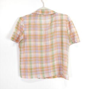 Vintage women's button down shirt pink green pastel madras plaid Size Small