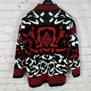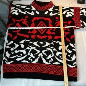 Vintage women’s red black crewneck sweater size small scrollwork statement piece