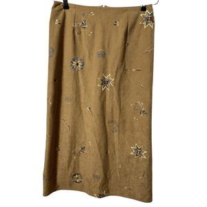 Vintage womens skirt tan native american midi Aztec Embroidered Western
