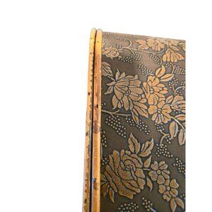 Vintage wood & bamboo basket handbag purse embossed Floral Latch Closure retro