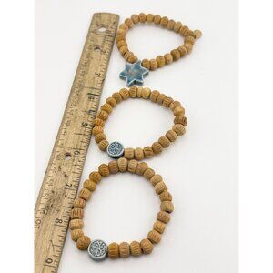 Vintage wood bead porcelain Jewish star multi strand bracelet set