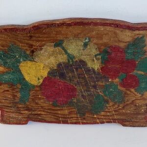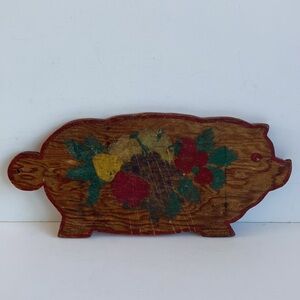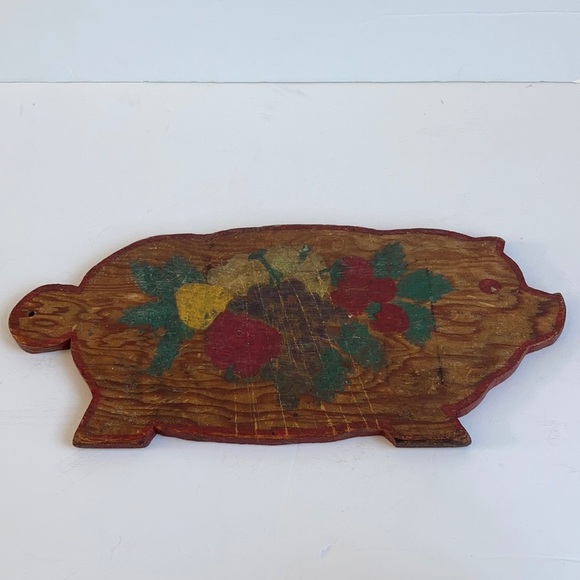 Cute vintage wood pig cutting board folk art painter strawberries grapes garden paint