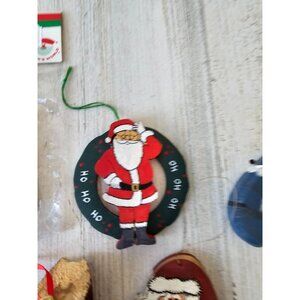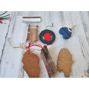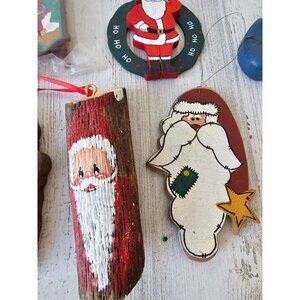 Vintage wooden Santa ornament set sled clause rustic country folk art shabby chic