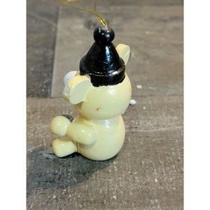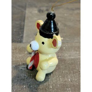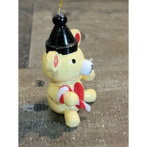 Vintage wooden brown teddy bear candy cane ornament Xmas decor