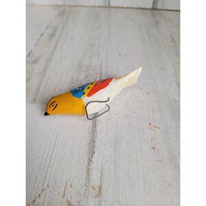 Vintage wooden folk art miniature bird uni clip-on decor figure
